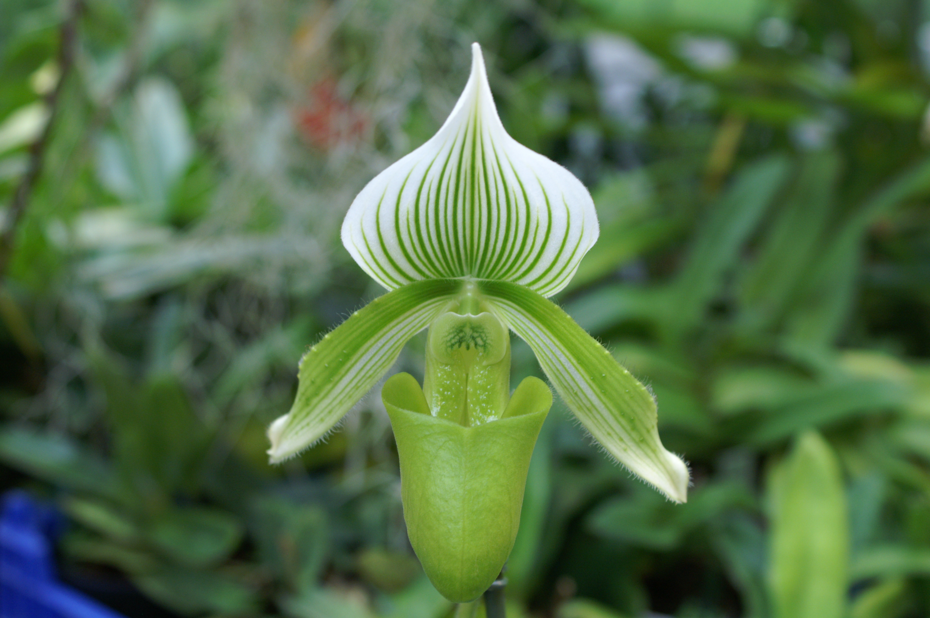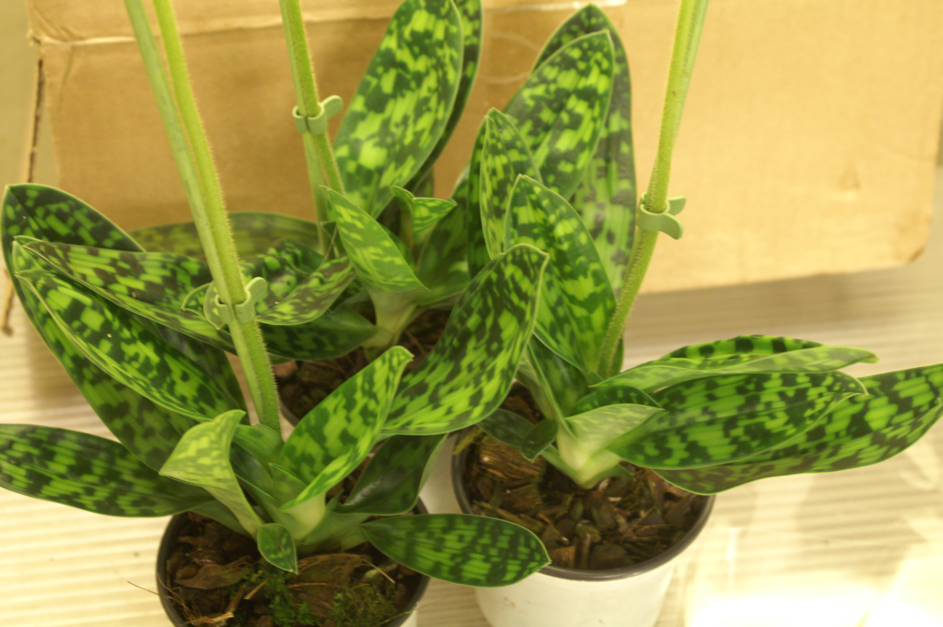Paphiopedilum Maudiae, gulgrön blomma med mycket läckert marmorerat bladverk. En stängel med blomma plus kort kommen knopp i nytt skott samt ett yngre skott EXTRAPRIS 145 KR