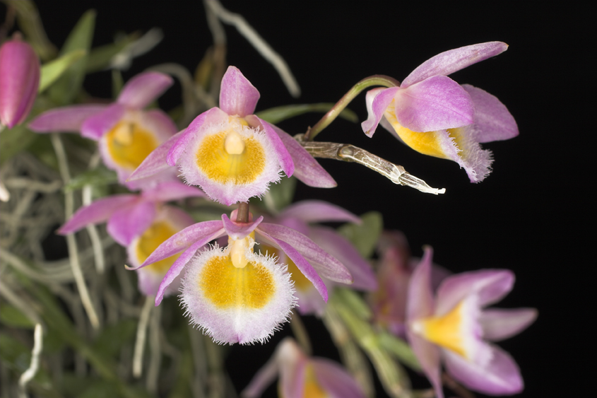 Pescatorea dayana, intensivt doftande, hållbara rosa/vita blommor ca 7 cm på korta stänglar, nu m knopp, 250 kr NYHET