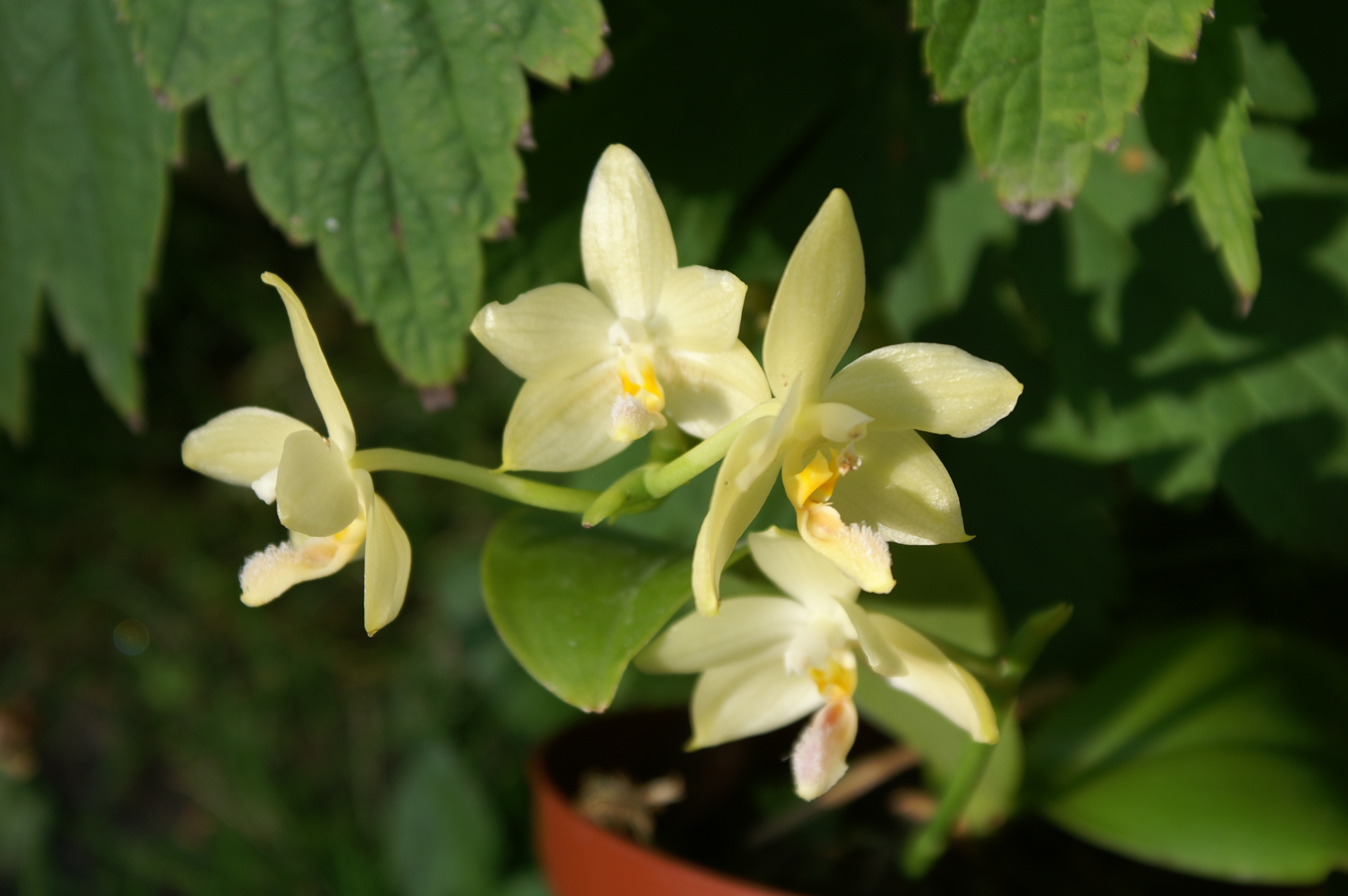 Phal floresensis, småväxt art med gula blommor på korta stänglar, nu med stängel, 250 kr