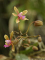 Bulbophyllum polystictum, 6-7 cm lätt orangerosa blommor på korta skaft, nu med stänglar, 250 kr