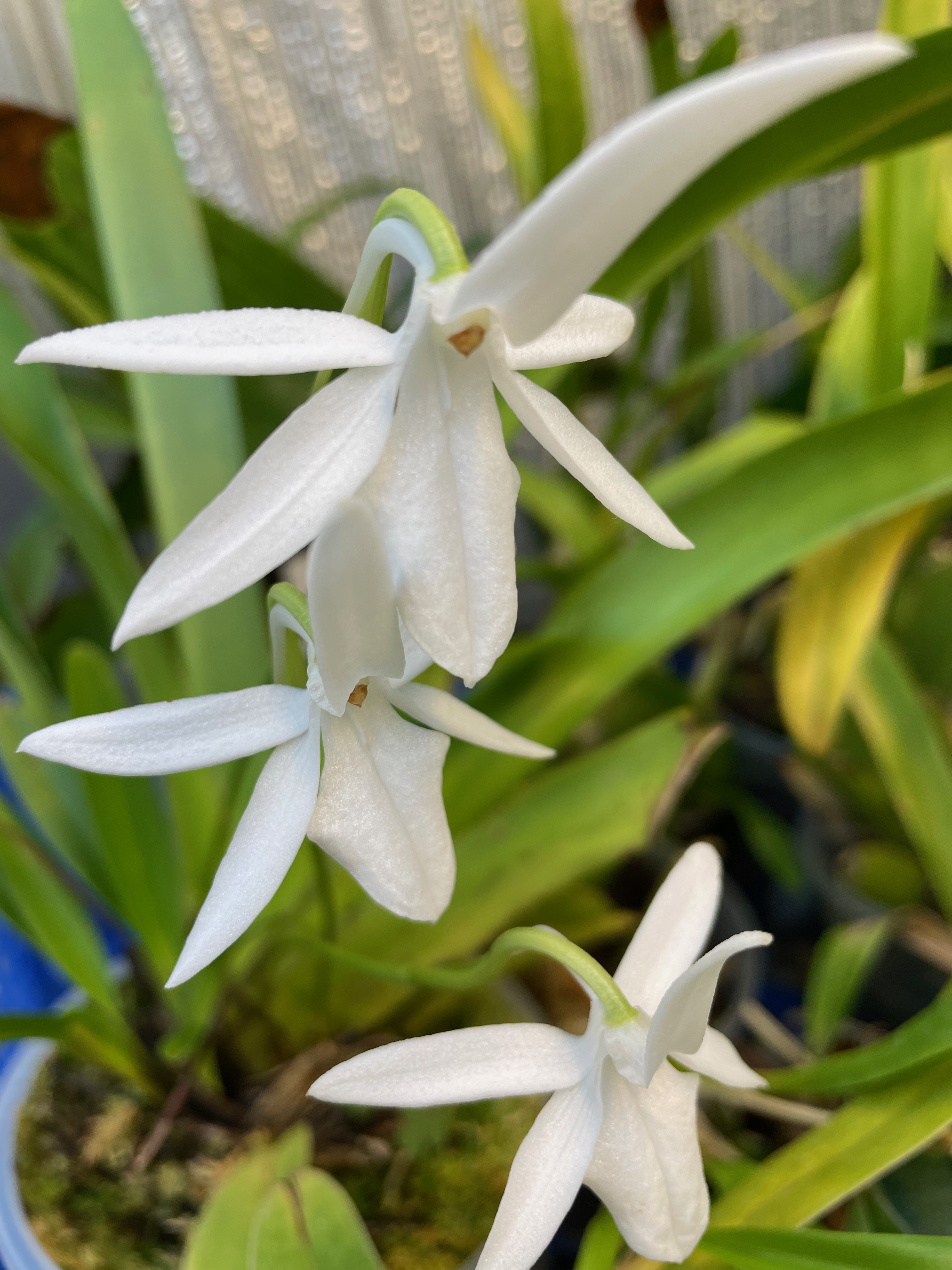 Alla kunder och andra besökare här önskas en God Jul och ett riktigt Gott Nytt odlingsår med några bilder från mitt växthus just nu. Sophronitis wittigiana, Jumellea sagittata, Paphiopedilum White Lady och Phragmipedium Peruflora´s Cirila Alca