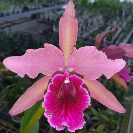 Laelia tenebrosa x (Cattleya dowiana x warneri) LC Fireball medelstora blommor med doft som kan variera i färg och vanligen blir mer röda än på denna bild. Plantor med knoppskida, 490 kr NYHET