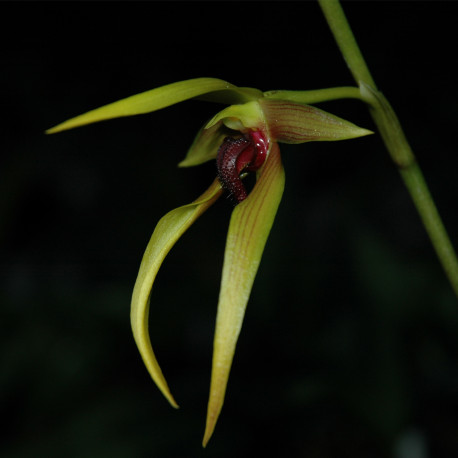 Bulbophyllum carunculatum x klabatense, en primärhybrid mellan två arter som gillar värme o hög RH, flerblommig stängel, blommor 6-7 cm, nu med stängel, 390 kr