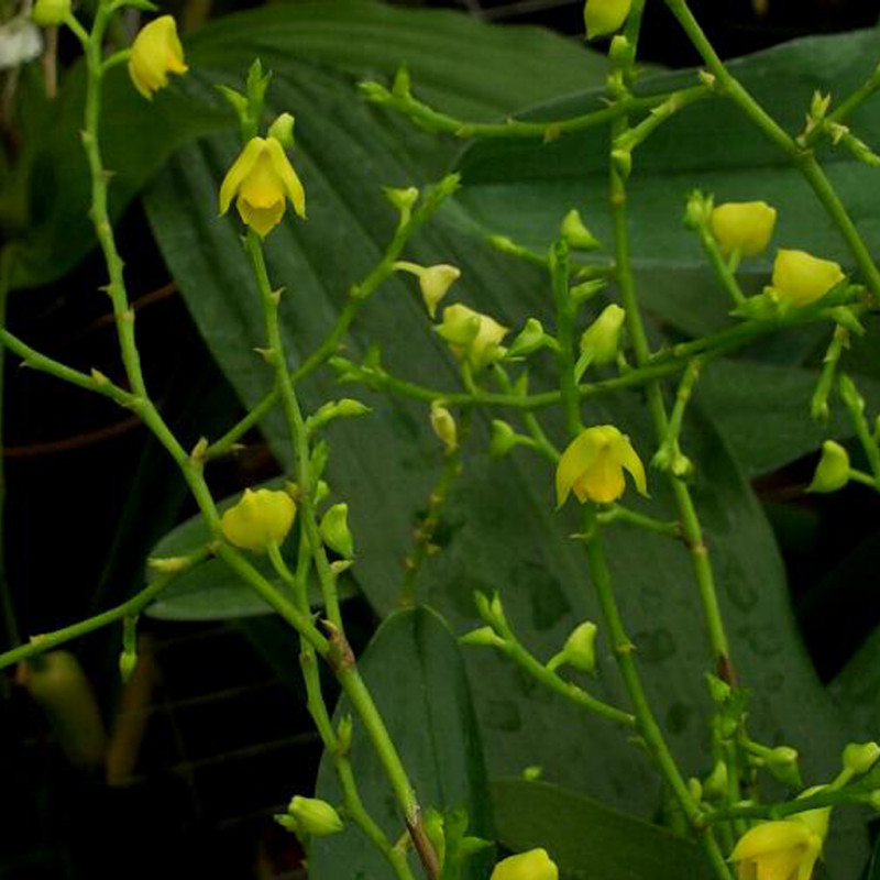Polystachia subdiphylla, en småväxt kall art fr Tanzania som får små blommor, halv cm bara, på grenade stänglar, nu med stängel, 390 kr