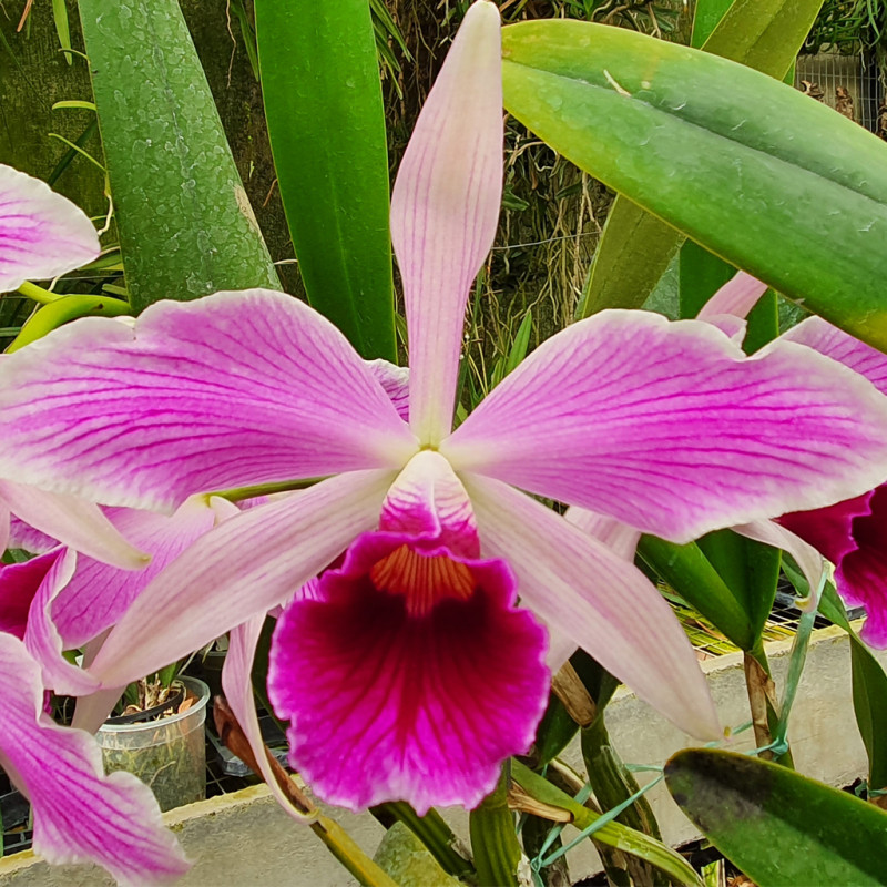 Renanthera vietnamensis x imshootiana, en korsning av två varandra närstående arter, intnensivt röda blommor ca 6 cm, flera på stängeln. Renanthera är nära släkt med Vanda och denna ser ut som en liten vanda och kan blomma som ganska ung. Möjligen blombar, 450 kr