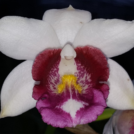 Cattleya loddigesii alba x schroederae alba, en doftande primärhybri som ärvt blomvillighet fr loddigesii och har något mindre blommor än schroederae, relativt lättodlad, nu med knoppskida, 490 kr UTSÅLD