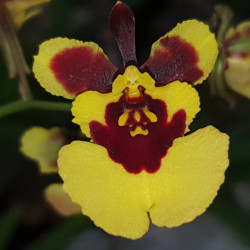 Trigonidium egertonianum, en liten varmväxande art, närstående maxillaria som får säreget formade blommor 3-4 cm på kort stängel, nu med knopp, 350 kr